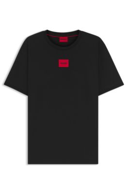 Hugo Regular Fit Cotton T Shirt With Red Logo Label